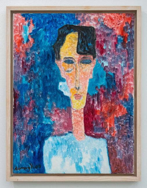 An architect by training, self-taught artist Kin Maung Yin (1938-2014, Yangon) is widely regarded as one of the leading figures of Burmese modernism. After a short stint as a railroad engineer, he threw himself into art making in the 1960s, producing wildly semi-abstract paintings that earned him a place in the Burmese pantheon of modernist pioneers. Influential and much beloved by the art community, the artist is best known for portraitures, which over the years gained increasing affinity with Italian modernist Modigliani's elongated figures with mask-like faces.