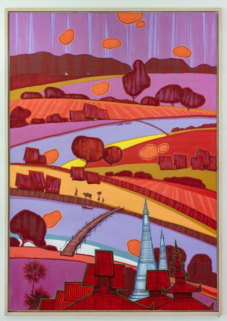 The SMU Art Collection has over 70 paintings from Myanmar donated by Ian Holliday. A specialist in Burmese politics, Holliday assembled the Thukhuma Collection which comprises of Burmese paintings largely dating from the transitional decade of the 2010s, presenting multiple artistic perspectives on a society in reform. On display at School of Social Sciences and Li Ka Shing Library, the gifted paintings depict the people, culture and land, from the streets of Yangon and rural peripheries to political icons and indigenous deities.