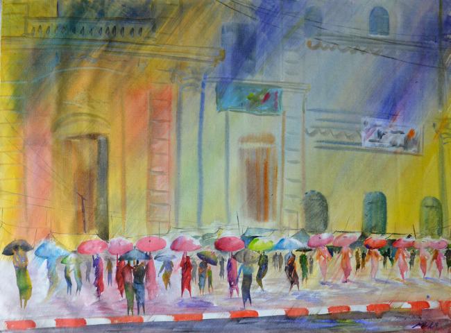 Untitled (Pedestrians with umbrellas)