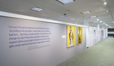 The SMU Art Collection has over 300 paintings from Myanmar donated by Ian Holliday. A specialist in Burmese politics, Holliday assembled the Thukhuma Collection which comprises of Burmese paintings largely dating from the transitional decade of the 2010s, presenting multiple artistic perspectives on a society in reform. On display at School of Social Sciences and Li Ka Shing Library, the gifted paintings depict the people, culture and land, from the streets of Yangon and rural peripheries to political icons and indigenous deities.