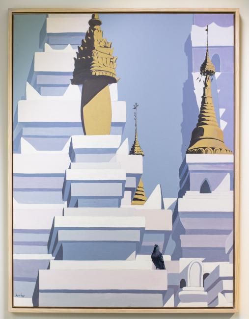 The SMU Art Collection has over 70 paintings from Myanmar donated by Ian Holliday. A specialist in Burmese politics, Holliday assembled the Thukhuma Collection which comprises of Burmese paintings largely dating from the transitional decade of the 2010s, presenting multiple artistic perspectives on a society in reform. On display at School of Social Sciences and Li Ka Shing Library, the gifted paintings depict the people, culture and land, from the streets of Yangon and rural peripheries to political icons and indigenous deities.