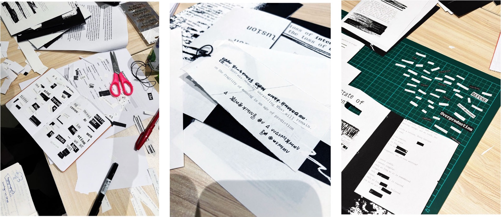 The main activity for Day 1 involved a physical engagement with the manifesto that was fed to ππ§π³π²π¦π π.π. The key difference between us and the machine was that taking apart the manifesto in its zine form, added much more complexity to the process. The tactility of paper gave weight to the printed word, while typography and other graphic design features affected the reading experience. The exercise stimulated a discussion on how presentation formats change the way we make meaning from text, providing βdata pointsβ currently unavailable to LLMs.