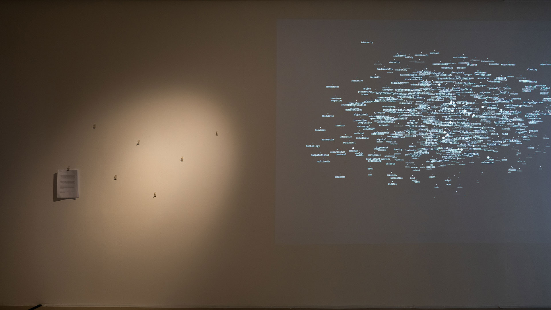 While the first iteration in the Enzyme series digested images, its successor βturned its attention to language β specifically to the spaces between wordsβ. During the artist talk, Jo and Kapi shared how the series responded to social behaviours spurred by emerging technologies. Enzyme 1.0 questioned oneβs relationship with images during the NFT boom in 2020-2022, while ππ§π³π²π¦π π.π ruminates on how large language models (LLMs) impact writing and artmaking. It is a critique on the logic behind predictive text and the notion of language collapse, in the context of LLMs, refers to the degeneration of models when they are trained on data generated by other AI instead of humans.