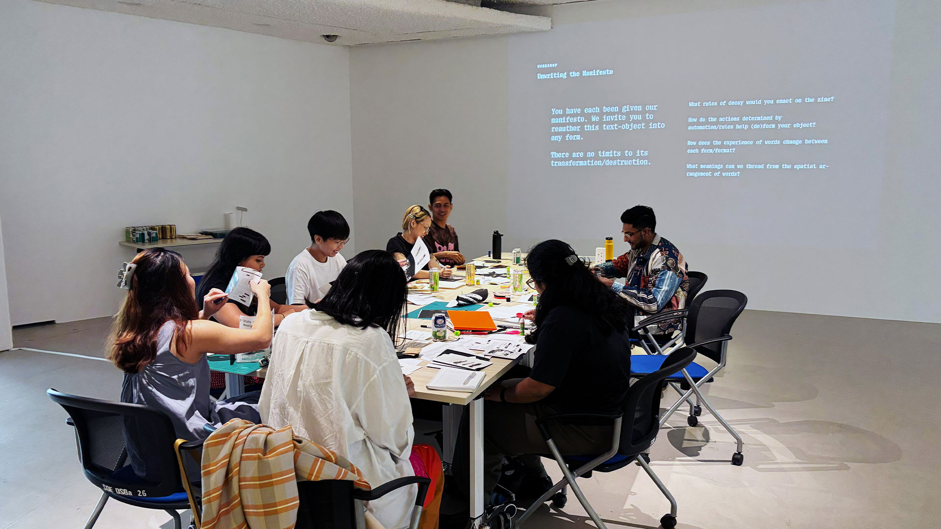 On 5 and 6 April 2025, a closed-door symposium was held in conjunction with jo+kapiβs exhibition ππ πππππππππππ ππ/πππ ππππππ π ππππ. The two-day programme centred on the role of language and writing in art-making, as well as collaborative brainstorming of ideas that can be presented in the next iteration of Enzyme. Jo and Kapiβs invited interlocutors are a group of artists and writers working with digital platforms: Hilary Yeo, Rafi Abdullah, Aditi Neti, Alysha Chandra, and Seet Yun Teng. I participated as a writer tasked to document the symposium, and through this essay, I hope to unpack some key questions raised as well as my personal reflections. In the two months since, my mind kept returning to the workshops as the discussions about generative AI and its impact on the workplace and education intensified.